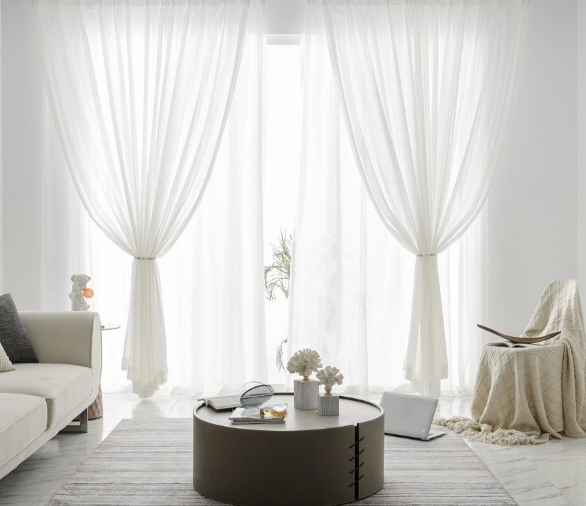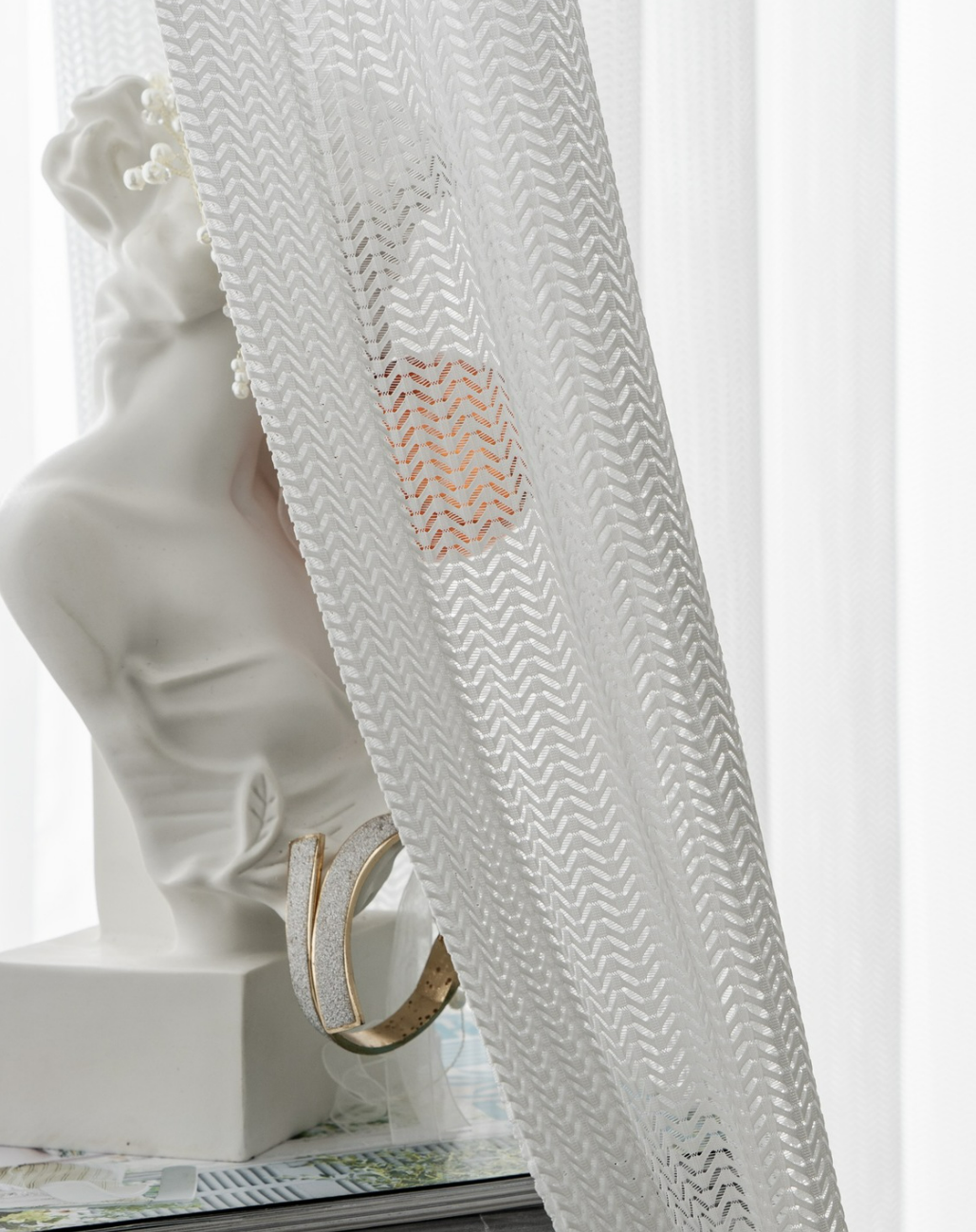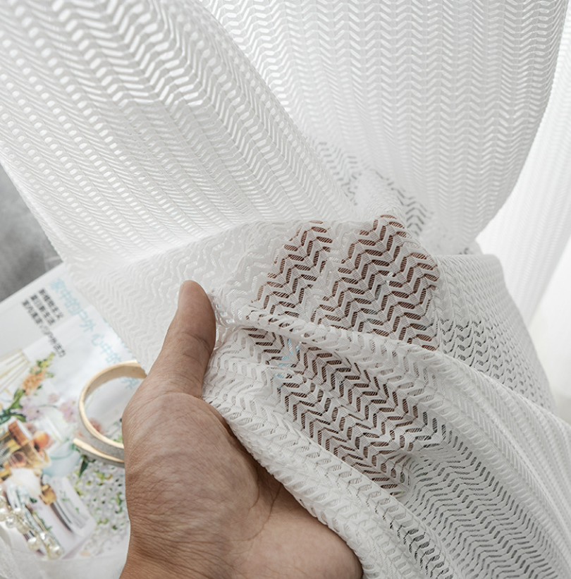 Voilage blanc tissage chevrons fishbone élégant et lumineux