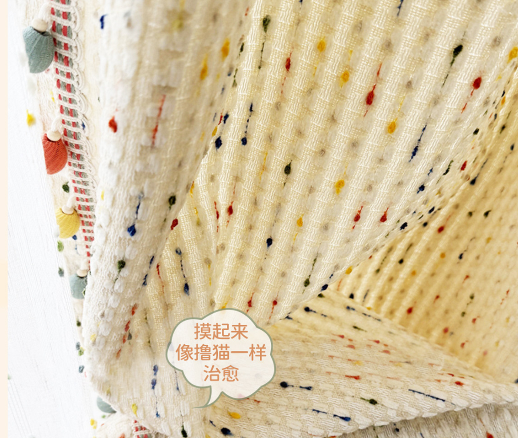 • Pois multicolores tissés jaune, rouge, bleu, vert, orange