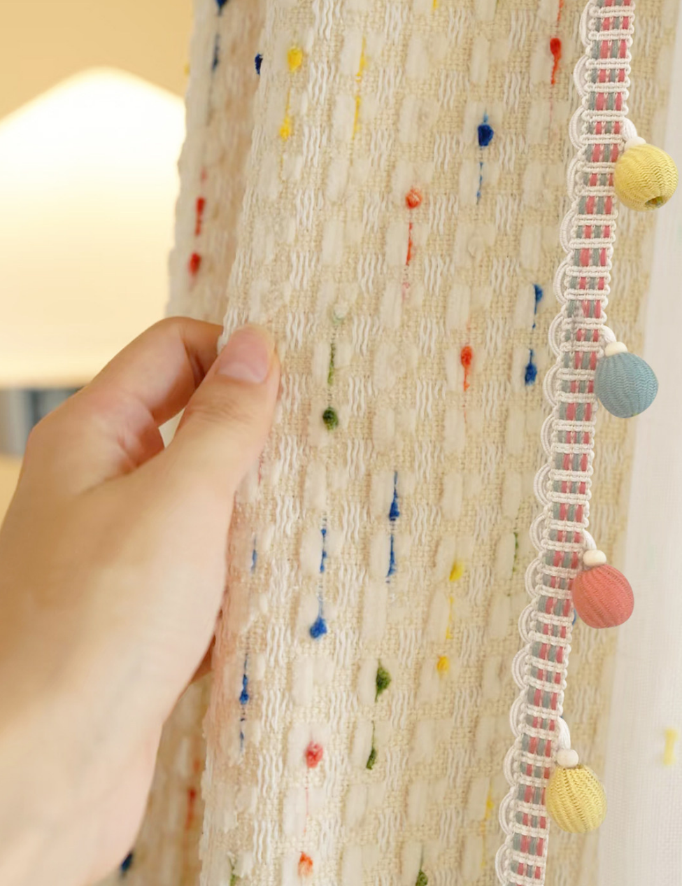 Embellissez votre déco intérieure avec Voilage enfant blanc pois colorés pompons chambre joyeuse